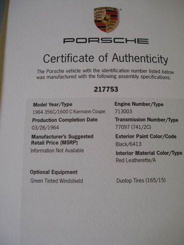 Stunning Black 356 C Coupe With Coa on 2040-cars