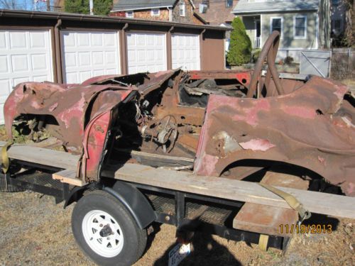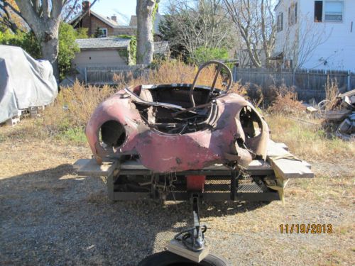 This Speedster was found as is after sitting outside for a unknown number of years. It was pulled from an old Roosevelt estate on the North Shore of Long Island. It is believed to have been a race car owned by the Roosevelt's and run at Bridgehampton Raceway in the late 50's to early 60's. It appears that it was crashed at some point in history and was parked. It still has part of the racing numbers on the side along and a roll bar. As you can see from the pictures it is in extremely rough shape. But it is still a real 1957 Speedster. To pick this car up you will need to bring your own trailer, the trailer in the pictures IS NOT included in the sale. Serial Number: 83385 Reutter Color Tag Number: 601 Any questions regarding this car please message me and I'd be happy to answer you. |