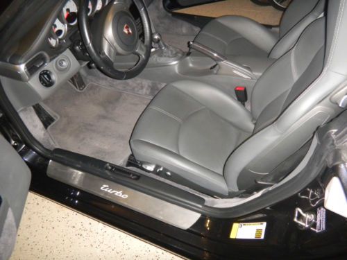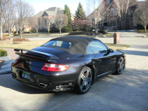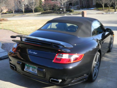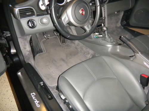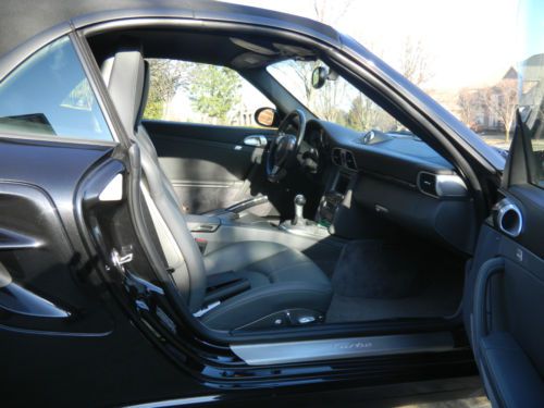 '2008 Turbo 911 Cabriolet; Basalt Blk Metallic with grey/black interior; 6 speed manual; 15,000 miles; excellent condition and no wear on interior seats; sports chrono pkg, all leather seats and steering wheel (thicker wheel), carbon fiber interior pkg, Porsche crest in seats on front and carbon fiber seat backs, lighted door sills, newer tires placed end of August '2013 front and rear, Major Service "A" performed including oil change and spark plugs, all service up to date, 3M plastic wrap on body; car has only seen winter from the inside of the garage, runs great and looks even better; if you are looking for a low mileage Turbo Porsche, this is it! Auto purchased from Arizona in '2012 with 2,500 miles; I am 2nd. owner; Serious buyers only! Car will be shipped at buyers expense after payment received and cleared; clean title in hand and without any liens!