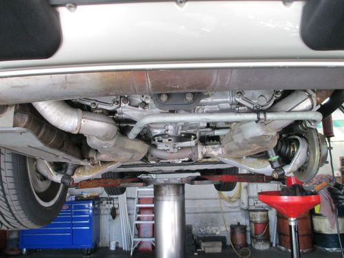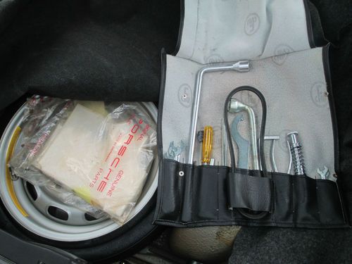 In went race cams and ported cylinder heads, a lightweight flywheel, an RSR titanium racing exhaust, 935-style lollipop seats and RSR carpeting, a lightweight battery, perforated and galvanized hinges and brackets, hardened perspex windows. The 3.2-liter engine puts out 270 horsepower - 70 hp above the stock 911 on sale here in 1986 - and 226 pound-feet of torque through a limited slip differential to staggered wheels. The exterior color is metallic rock-green lacquer.