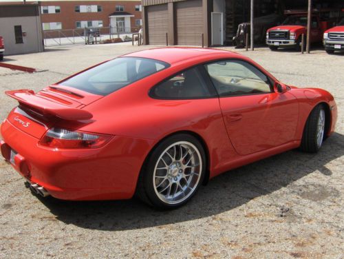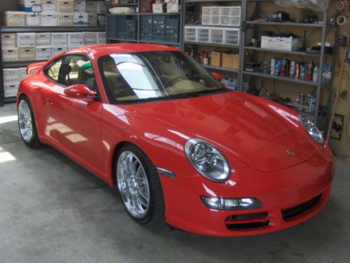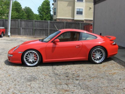 LATE 2005 CARRERA S IN SHOW CONDITION, NAVIGATION, BOSE, SPORT CHRONO, PASM, BI-XENON HEADLIGHTS, HEATED SPORTS SEATS WITH PAINTED BACKS,SUNROOF, AUTO DIMMING MIRRORS, LEATHER REAR SEATS, PAINTED CONSOLE, NEW BBS RS-GT WHEELS WITH NEW MICHELIN PILOT SPORTS, ALL NEW OEM PORSCHE BRAKES, NEW BATTERY, NEW H&R SPORT SPRINGS, FABSPEED MUFFLERS, TECH ART STYLE WING, LED TAIL LIGHTS,THIS IS A 3 ADULT OWNER CAR IN EXCELLENT CONDITION THAT HAS NEVER BEEN WRECKED OR TRACKED. OFTEN MISTAKEN AS A NEW CAR BY NOVICES, NEW LYOYDS MATS WITH CARRERA S STITCHING, ADDED LEATHER TRIM DASH STOP WATCH, CONSOLE DOOR AND PCM SIDES, ORIGINAL MUFFLERS, SPOILER AND SPRINGS INCLUDED, THE CAR HAS ZERO DOOR DINGS AND THE ORIGINAL FRONT BUMPER COVER IS RECENTLY REPAINTED(FACTORY QUALITY) TO ELIMINATE THE STONE CHIPS, DEALER SERVICED, STORED IN CLIMATE CONTROLLED GARAGE, MINOR WEAR ON THE DRIVER SEAT SIDE BOLSTER ONLY, ORIGINAL OWNERS MANUAL, VALET KEY ETC. INCLUDED. THIS IS A LATE MODEL YEAR BUILD AFTER THE ENGINE DESIGN CHANGE. THE CLEANEST 54K MILE 997 AVAILABLE ANYWHERE!