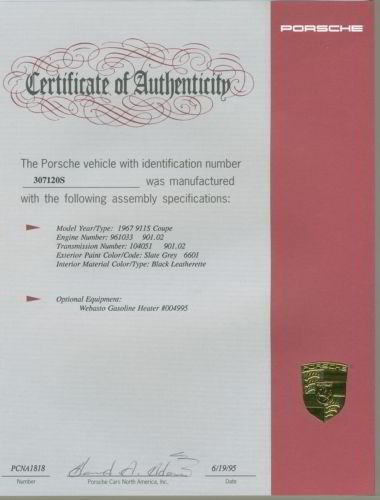 1967 911s Coupe Slate Grey Matching Coa Numbers European 42415 Km on 2040-cars