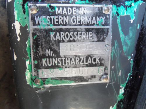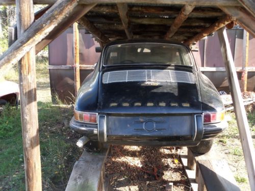 1967 911S COUPE: 307120S HISTORY: I purchased this vehicle approximately 30 years ago with the intentions of restoring this car. I have previously owned several older Porsches but consider myself a nonprofessional mechanic or body man. An appreciation for these vehicles was gained while I served in the military in Germany during the early 1970's. At the time of purchase, the vehicle was in a state of mechanical disrepair but looked very promising as a historical restoration candidate. My intentions where to restore this car as time and money became available. The vehicle looked not too dissimilar from what it does today. Outside of some questionable cosmetics such as bad paint jobs, the vehicle seems to be very original. Hopefully I can convey what is known about this vehicle to aid in bidding. Since this was a project car I started slowly with the restoration but never finished. Approximately 26 years ago the car was put into a storage shed of which it still remains. The car is covered and stored off of the ground with the motor turned over by hand on a regular basis. CONDITION: A. PAINT: The original paint color of SLATE GREY #6601 is still on most of the car. This paint is covered by a couple of questionable paint jobs of paint over paint. What is shown in the photos is an inferior black color over the SLATE GREY color. The paint tag photo shows the original color. B. BODY: The body does have some dents and dings. There is a noticeable 6 inch dent in the right rear fender. The front bumper has a ding. The right front fender has been replaced. The rear deck lid was repaired after a questionable fiberglass ducktail was removed. It appears that this car originally had a set of bumper guards front and rear. There is some rust or corrosion of the front pan under the battery. The underside of the car seems to be fairly solid. There is some damage around the right side jack receiver. The rims are not original but early 5 1/2 inch Fuchs. Hopefully the photos will show these short comings. C. INTERIOR: The interior of black leatherette seems to be original. The seats are in great shape. The dash has minor cracks. The headliner is original but needs attention There is a AM FM radio. The dashboard gauges are in German. PLEASE NOTE: The speedometer reads 42415 Kilometers not miles. D. ENGINE & TRANSMISSION: The engine and transmission appear to be original to the car. The transmission #104051 901.02 was rebuilt by a local Porsche mechanic. This was part of a mechanical problem when I first purchased the car. The first gear syncro was replaced as well as a new clutch installed. The engine# 961033 appears to be correct. The engine ran strong when placed into storage and still turns freely. I never got into the engine but believe it to have its original interior parts such as the original chain tensioners. The carburetors are the correct Weber 40 IDS 3C & 40 IDS 3C1. The engine has scratches on some of its numbers. The engine case number is 901.02 # 7570. E. WARRANTY, SHIPPING, & PAYMENT: The vehicle is being sold as is with no warranty expressed or implied. The vehicle is located in the State of Montana, USA. All shipping will be the sole responsiblity of the buyer. The vehicle has a clear title. A successful bidder must contact me within 24 hours of the close of the auction with a $500 deposit and the remaining sum paid within 72 hours of the close of the auction. F. RESERVE: I believe this vehicle is a survivor and an excellent example of a rare and very collectable early 1967 911S PORSCHE SWB COUPE. I have placed what I consider a very reasonable reserve price on this vehicle. Hopefully someone can see my vision of a total restoration for this car. Happy bidding.