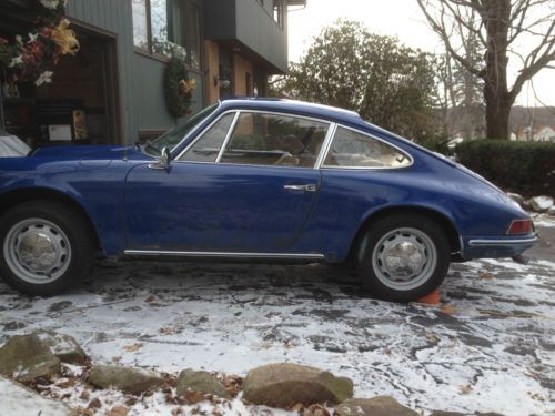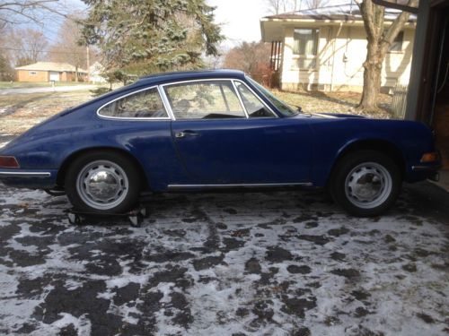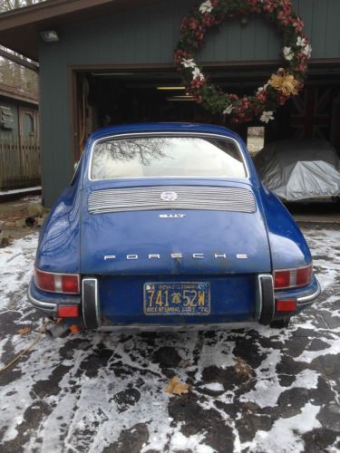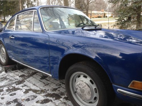 This is an original condition, unmolested, one owner Porsche 911T. Paint is original. (ossi blue) Engine, transmission and drive train are original and number matching. Car has been in dry storage since 1975 and comes with full documentation history. Original 6 volt batteries set up still in the car as it was from the factory. Interior: Good to excellent condition. Leather seats are perfect with very little wear. Dash is perfect. Gauges are good, blaupanck radio, steering wheel etc all good to excellent. Small hole in drivers side carpet, some minor stains on edge of headliner but should clean up easily. Glass is excellent. Body: Overall very good condition. Car was never raced or in an accident. Paint is original Cosmetic and lower surface rust on body panels with no rust through or holes. Small dent on engine lid and trunk lid. (See pics) Rockers need replaced or repaired. Trunk, battery compartments , storage box and floor are all excellent. Frame and undercarriage : Floor panel in overall good condition but will need minor patching on driver side rear floor. Suspension looks good and solid. Frame and supports are in good condition except for corrosion around rear left torsion support. That will have to be repaired but should not be a major issue. Jack supports are solid. Rear passenger wheel does not turn freely. Engine and Transmission: Original, intact and unmolested. Numbers matching and factory correct. I did not attempt to start the car but I assume it will need attention. I have tried to be as forthcoming and as accurate as possible in my description of this 911. Please look over the pictures carefully and contact if you have any questions. Good Luck. |