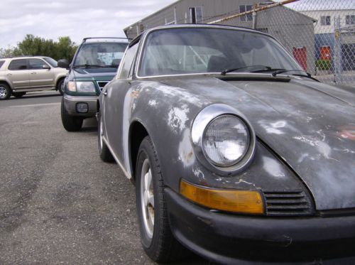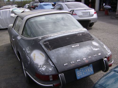I bought this targa in 2007 with plans to restore it & am reluctantly selling to finance my 356 project restoration. Not currently running- my mechanic says carbs need rebuilding (are off engine as pictures show). Body is straight, but rough. Very little rust that I have seen. Interior is ok: seats decent, dash does have some cracks. 5 speed. Engine not matching numbers, but is a T. (I know- someone painted the case red a long time ago). I have the COA. I had the gas tank re-coated years ago- never had gas in it. Also have receipt for starter, wheel bearings, & other misc. parts installed. All parts are there. Here's a great opportunity to restore an appreciating 911. Will try to post more photos soon. Targa top needs refurb. Low Reserve |
