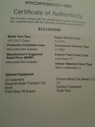 Nr 1972 porsche 911 targa w/ porsche s 2.4 motor cabriolet conversion no reserve