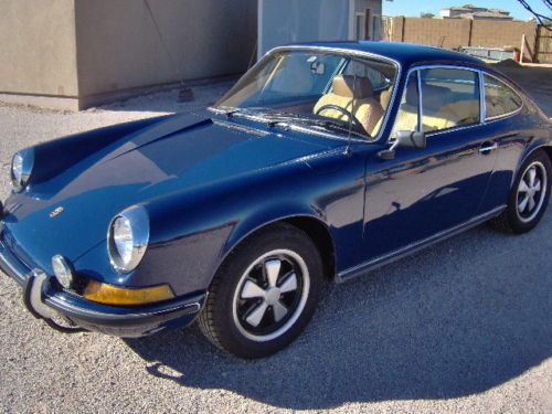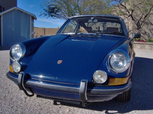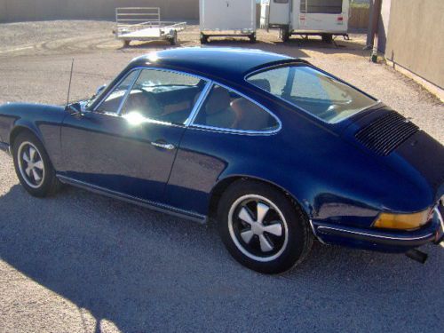 1972 Porsche 911 none sunroof coupe.Factory color (Albert Blue).Been repainted at some point.Nice car has external oil filler on passenger side rear fender.I found this car after sitting in a garage for at least 15 years.I put new brakes and cleaned tank with new fuel lines.Car has original mechanical fuel injection.Car runs very well,New tires.A/C blows but not cold.No rust.I changed carpet and floors are solid.No rust in battery boxes.Have new Optima battery.Engine #6290693.Trans shifts good.Car has spare in trunk on a Fuch wheel.Interior needs seats upholstered and rear deck .This is a very nice car could be driven like it is or restored.