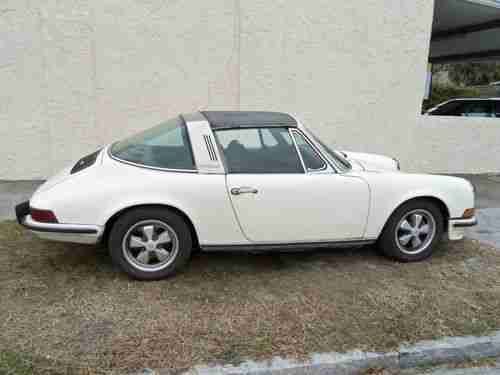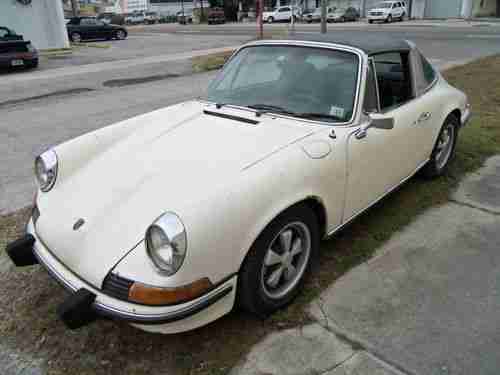 Up for auction is a 73 911S Targa. It's a very complete very original numbers matching car that despite it's outward appearance runs, drives, shifts and stops very well. Obviously it's in need of restoration, but all of the pieces are there including the original and desirable sport seats. There is a tool kit that is largely complete and the original keys (all 3) and the original Porsche tag along with the original Driver's Handbook. I have the Porsche COA for this car and it shows Koni shocks, sport seats, and additional cooling coil. Not sure what the last item means. Either the oil cooler or air conditioning. As you can see from the photos, there is some rust in the front pan area & the battery boxes which is very common on these cars. The floors are very clean except for a small area in the front passenger floor (pictured). All of the other common rust areas appear to be totally rust free (rockers, door bottoms, fender bottoms, window corners etc...) There is evidence that this car has been hit in the right front & pulled. This must have happened when the car was nearly new due to the age of the paint. It also appears that it was involved in a fender bender at the rear of the car around where the engine lid latches. The license panel has been replaced and the engine lid has been repaired but there is still minor damage to the body member that holds the engine lid latch. I do believe that the paint from the doors rearward is original, but I can't be positive. The left door & fender show signs that this car was parked by braille at least once in it's life. So, it is a great starting point for someone who wants to restore one of these cars. Mechanically it is VERY sound and recently had $3500 in fuel/ brakes/ alternator & battery work, so you can drive it for a bit before you take the plunge if you like. It runs & drives like a 2.4 S should and is a LOT of fun. I'm thinning my herd as I'm restoring my 59 356 cab and am losing motivation for future projects. I have done my best to represent this car accurately through my description and photos. Email any questions. Good luck bidding!