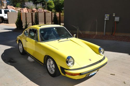 The car has the smoothest running 2.7 on the streets, as quoted by our local porsche specialist, Randy at Autowerks in Boulder, CO. The Car has a lot of pluses, and some areas of focus needed. We are selling to make room in our garage. We have owned the car since 8/2007, and have invested over $9K into her, mostly with a complete valve job, new brakes, new master cyclinder, new battery, new shocks and struts, new exhaust, new tires, ipod stereo, VDO repair on odometer at 79,344 miles (not clear when stopped), and a long list of smaller additions. I have very detailed records since 1987, which I have organized into a spreadsheet so you can track what has been done and when to the car. The car runs and drives extremely well and is very fast for a 2.7. I have a trickle charger that keeps the battery charged, however without it the battery will run down in 4 weeks of sitting. I have not located the short, as the trickle charge works fine. The cold start regulator was repaired and adjusted, but still makes for a tough cold start in the middle of winter, but she always starts. I only drive the car on Fridays to work in good weather, otherwise she gets waxed and does an odd run to the store on nice weekends and is garaged year round in a climate controlled garage. The paint is a respray of the correct 117 yellow color which I don't know when it was done, and the right front fender was repainted 8 months ago due to a leaf blower dropping on the fender in the garage (long sad story). The color match is very impressive, however, you can notice a slight greener tint in low light conditions. There are some dings, and some chips, some of which I show in the photo's. The front smile needs some work as the rubber is lumpy and the bumper is well chipped with the white showing though. It is abeautiful car that always gets a lot of attention and runs and drives incredibly well. For those of you that know the 2.7 Magnesium block engine, it does have the time certs, which is a huge plus when investing in these cars and engines. It was rebuilt in 1987, records and details attached, to 911s specs, and the valve job done in 2008, included some intake expansion that increased the horsepower of this car immensely. You will notice on the front photo a small dent in the chrome left headlight frame, I have since replaced this. I am happy to answer all questions and hope the photos, records, and above details help to present a very candid, and accurate description of our special car. Buyer pays shipment, and delivery from our garage to destination.