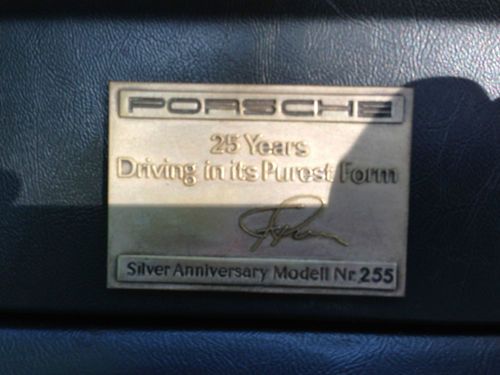 This is a completely original 1975 911S Silver Anniversary Model with the factory silver plaque #255 off the assembly line with a total of 700 cars produced. I am the original owner and purchased the vehicle on 2/12/1975 from my local Porsche/Mercedes dealer in Alabama. I personally drove the car for it's entire life of 191056 miles and I have all maintenance records. This vehicle has never been in an accident and no body work has ever been performed on this vehicle.