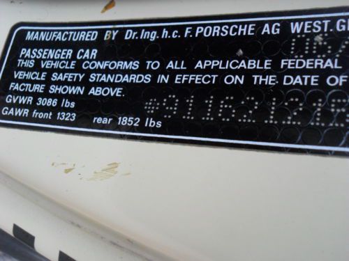 EXTERIOR PERFECT ZERO RUST AND LAZER STRAIGHT, PERFECT PAINT WITH ALL NEW SEALS INTERIOR ORIG AND EXTREMELY NICE FULL LEATHER CAR ENGINE 1985 CARRERA 3.2 60K ORIG AND VERY STRONG TRANS 915 5SD PERFECT SUSPENSION BILSTIEN SPORTS ,NEW BRAKES AND LINES THIS IS A VERY NICE 911! IF NEEDED TO SPEAK IN DETAIL CONTACT DOUG WALKER 408 205-8056 I WILL POST PHOTO'S UNDER PORSCHE TOMORROW |