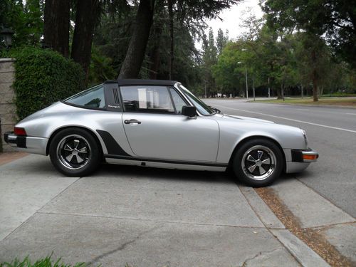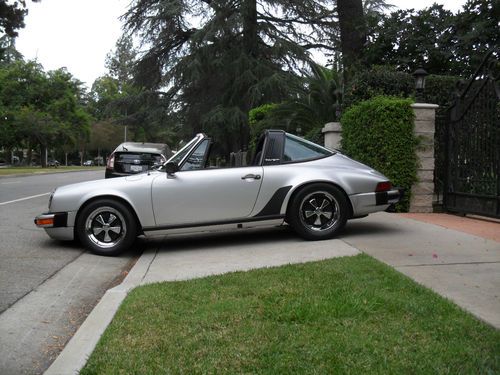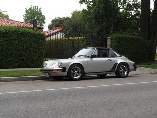1979 PORSCHE 911 SC TARGA EURO WITH A RARE REAR WIPER .CLOTH N VINYL INTERIOR. BLACK WITH BRAND NEW SEAT COVERS 911SC FLOOR MATS REAR 911SC MAT. COOL CAR SOME UP GRADE. DUNLOP SP SPORT 8000 RUN FLAT P245 50 ZR 16,8" IN REAR. P205 55 ZR 16 7" IN FRONT STAGERED WHEELS 7'S AND 8'S AND TIRES. THE EXTERIOR,NO RUST.ITS BEEN IN CALIFORNIA ALL ITS LIFE. there is one little dent/large ding on front left fender. there is a ding in the driver door very small. on left corner bumper by the turn signal there is 2 scartchs very small. on hood there is some inperfecitions in the paint and on the left rear panal. the paint is shiny a very nice 2nd paint. all chrome is good. window and wetherstriping is good no leaks. all glass is very good. the targa top is very good in n out.a very good running and sound car. no squeaks a tight and solid 911. INTERIOR, carpet good front n back. dash no cracks,has a dash carpet on it. the rear jump seats are very good and never been done all interior is origaiel no rips cuts or dis colored. the front diver seat has the cloth and vinyl the seams has opened and passenger side its all black have photos. but i put the original style seat cover that cost a lot of money. all lights work. the sterio is new and best buy instaled it. jvc bluetooth for your phone with hands free,plus you dont need any CD'S it dont take any. just play from your phone ipod ETC. a new fuel pump harness and the gear sinkro was just put in all new wireing that tlg motor sports. did the work. is a porsche macnhic the odometer just stoped workin g but the speedo works well. clean Arizona title in my name and in hand ready to sell. plus a 5 yr registrion. the porsche is in panorama city california.this 911 runs n drives very good looks good as well. i really hate to sell this sweet car it is my favorite one of my collection.but i had my fun time to let someone else injoy this sweet 911sc targa. well heres my contact info cell you can reach me after 9 am pacific time. (310) 228-7756 call or text. email me i will get back to you as soon as i can.