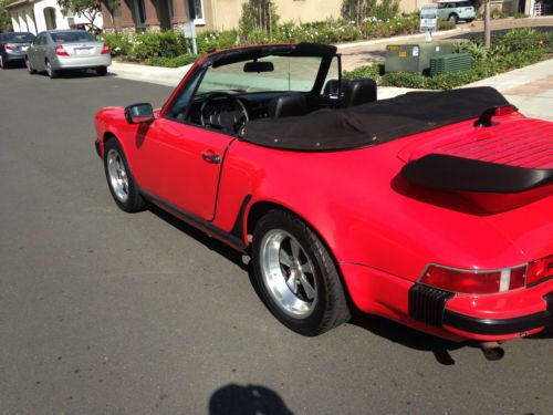 911 SC CONVERTIBLE ON EBAY FOR THE FIRST TIME HELLO WE OUR SELLING OUR 1983 PORSCHE 911 SC CONVERTIBLE. WE OUR THE SECOND OWNERS. WE BOUGHT IT IN 1998. FROM THE ORIGINAL OWNERS. THIS CAR RUNS REALLY GOOD. LOOKS REALLY GOOD. IT HAS 118K ORIGINAL MILES. AND WE HAD THE ENGINE REBUILT ENGINE. AT 108K MILES IT COST US OVER.. $7,000 WHEN WE HAD IT DONE. HAS A NEW CLUTCH. AND THE TRANSMISSION BEEN REBUILT. AT AROUND 90K MILES. SO THE ENGINE IS IN GREAT SHAPE. RUNS REALLY GOOD AND GREAT FOR LONG DRIVING. TRANSMISSION SHIFTS GREAT. CLUTCH FEELS VERY SMOOTH. IT IS THE ORIGINAL 3.0 ENGINE.. ALL STOCK 204 HP.. THIS IS A. A/C CAR. POWER WINDOWS POWER MIRRORS DEFROSTER. AND YES THEY ALL WORK GREAT. THE TIRES ARE VERY GOOD. THE BRAKES ARE VERY GOOD. IT DOESN'T BURN ANY OIL. AND IT DOESN'T LEAK ANY OIL. EVERY THING WORKS GREAT. JUST PASS SMOG. CURRENT REGISTRATION TILL JAN 2014. EVERY DAY DRIVER. CLEAN TITLE. ALWAYS GARAGE KEPT. NO RUST, AT ALL, 100% CLEAN BODY, 100% CLEAN UNDER CARRIAGE. 100% CLEAN TRUNK. THE TOP IS IN GREAT SHAPE NO CUTS NO RIPS ITS PRETTY GOOD. THE BACK WINDOW IS A LITTLE DIRTY. NO DENTS. NO DINGS. NO SCRATCHES. PAINT IS VERY GOOD...... EVRY THING WORKS GREAT ALL ELECTRICAL WORKS GREAT. ALL LIGHTS WINDOWS PLEASE LOOK DOWN TO SEE THE VIDEO OF THE CAR RUNNING AND DRIVING. ON THE FREWAY. AND WALK AROUND. AND MORE PICTURES OF THE CAR... THE HISTORY ABOUT THESE CARS......In 1978, Porsche introduced the new version of the 911, called the '911SC'. Porsche reintroduced the SC designation for the first time since the 356SC (as distinguished from the race engined 356 Carrera). There was no Carrera version of the 911SC. It featured a 3.0-liter engine with Bosch K-Jetronic fuel injection and a 5-speed 915 transmission. Originally power output was 180 bhp,later 188 bhp and then in 1981 it was increased to 204 bhp. In 1981 a Cabriolet concept car was introduced at theFrankfurt Motor Show. Not only was the car a true convertible, but it also featured four-wheel drive, although this was dropped in the production version. The first 911 Cabriolet debuted in late 1982, as a 1983 model. This was Porsche's first cabriolet since the 356 of the mid-1960s. It proved very popular with 4,214 sold in its introductory year, despite its premium price relative to the open-top targa.[11] Cabriolet versions of the 911 have been offered ever since. It was during this time, that Porsche AG decided the long-term fate of the 911. In 1979 Porsche had made plans to replace the 911 with their new 928. Sales of the 911 remained so strong however, that Porsche revised its strategy and decided to inject new life into the 911 editions. 911 SC sales totaled 58,914 cars.[11] THIS CAR IS GOING FOR A 5 DAY AUCTION WITH A RESERVE. AND IF IT MEETS THE RESERVE THE BUYER MUST LEAVE A $500 DEPOSIT WITH IN 24 HRS OF CLOSING AUCTION AND MUST BE PAID IN FULL WITH IN 3 WORKING DAYS. BY BANK WIRE CASHIERS CHECK. OR CASH IN PERSON. PLEASE CALL ME IF YOU ANY QUESTIONS. (949) 572-9829. THANKS FOR READING. AND HAVE A GOOD DAY.