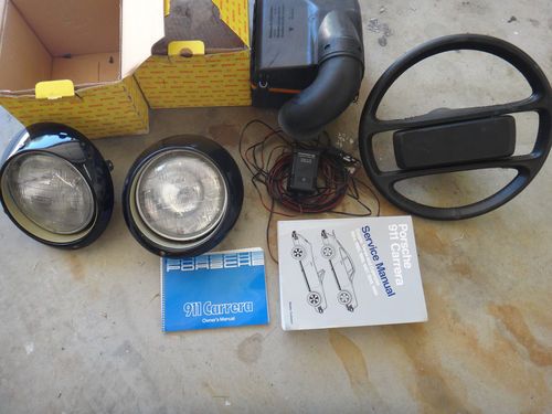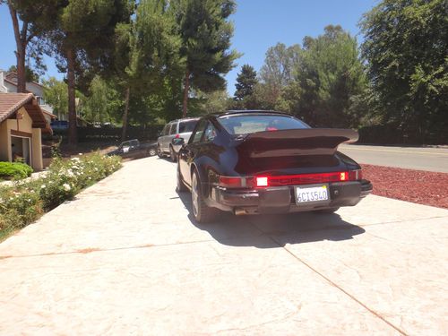once again this time I'm including a lot more pictures of asked items, 1985 porsche carrera 3.2 5sp runs and drives very nice clean title in hand, inside shows complete no rips or tears, this is a no accident car, out side show very well, tires are in new condition, have original tires and wheels also steering wheel, front head lights and air filter, also included is a service manual and a repair manual, presently non op due to having to many cars also missing the cat a $300 dlls. item and a/c will need recharging, the only major repair that I done was replace a/c compresor, evaporator around 1800.00dlls I took it out today for a small drive and it ran great, as you can see there are a lot of history on this car, there is the window sale sticker, the dealer add ons sticker the gas mileage sticker,there is a vehicle service contract it reads 30 miles on the odometer, a contract agreement from a buyer also there are two bills of sales from previous owners, there is a carfax dating back to 2002 and who knows what else is in there I didn't have time to review all of it but this is a well documented car, I have inspected very carefully the vehicle and I can find any indication that was painted and in the paper work I haven't found anything there yet, as I said if you must have this car you can submit an offer as I reserve the right to end this auction early, (951)225-9317 please leave a message I will return the call thank you. you can try my cell (619) 787-6068 but I won't answer if I am driving.