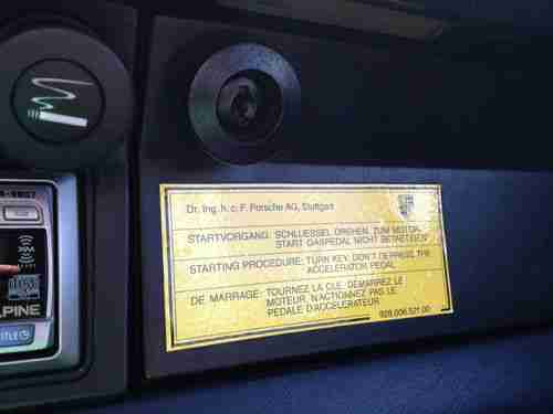 the interior features navy blue leather. the door panels are mint. the carpet is mint. the headliner is mint. all lights, gauges, switches etc work as they should. there are a couple of spots on the dash where the blue has scratched off (i'm told this is very common with these blue dashes) and there is a tiny itty bitty crack in the dash up by the fresh air defrost vent right next to the windshield. the powered sport seats are deliciously comfortable. the bottom of the driver seat has a split seam. that is the only imperfection. the passenger seat is mint. the rear seats are mint. there is an alpine head unit with an alpine digital amp, focal mids/highs and 2 JL Audio 8's in a custom enclosure behind the front seats. and check out the starting procedure sticker on the glove box door. i have never seen one of those and probably will never see one again. the a/c works as it should but they were an afterthought on these cars so it does not blow all that cold, but it does work as it should.