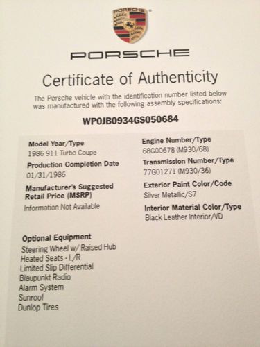 1986 Porsche 911 930 Turbo Carrera Coupe 2-door 3.3l on 2040-cars