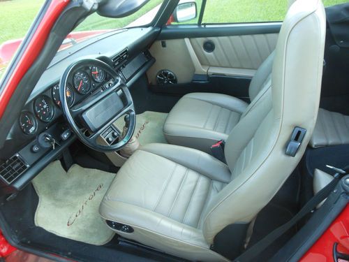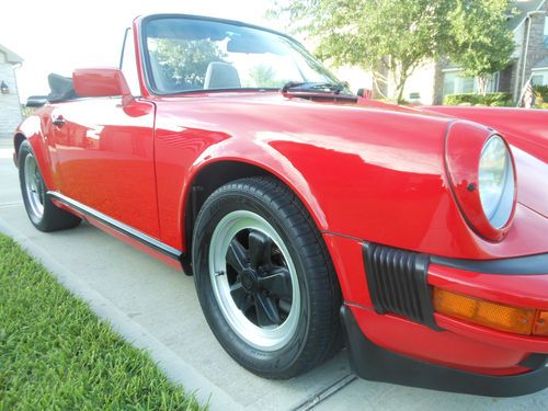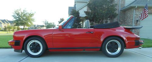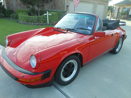 Lovingly & comprehensively restored 1986, guards red, 911 cabriolet. 500 miles since restoration which included professional bare metal strip and repaint. Porsche certificate of authenticity. Clean car fax from 1994 to present indicates no accidents which was validated during the strip down. VIN is WP0EB0914GS171229, mfg. date 4/10/1986, Original Guards Red/G1, Interior Grey Beige/black leather w/ Leatherette Belt-line/LP. Opts- Tonneau, slip dif, short shift, central lock system, automatic heating control, full pwr seats, power operated top, cruise. Car has excellent top, tool kit, owner's manual, tonneau. I have some details and original service records, manuals and comprehensive receipts from the restoration.