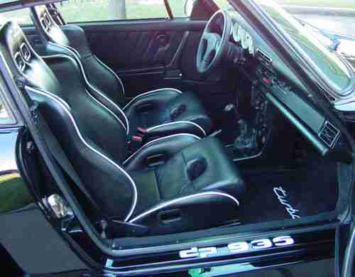 1986 PORSCHE 935 DP Black/black, 27,500 mi, very rare US version 935 DP stage II street model based on a 1986 US model 911 Turbo, twin plug 412 HP Deman Motorsport engine with dyno sheet, K29 turbo, rare 5-speed, brand new Zuffenhaus 17-inch "Fuchs" wheels powder coated black, Bilstein coilover suspension with Brembo GTP brakes, fuel cell, DP intercooler, oil cooler and exhaust, DP seats, white gauges and piping, RUF steering wheel, special center console, fresh major service with engine and transmission reseal by Rennsport/Mike Callas, immaculate condition.
