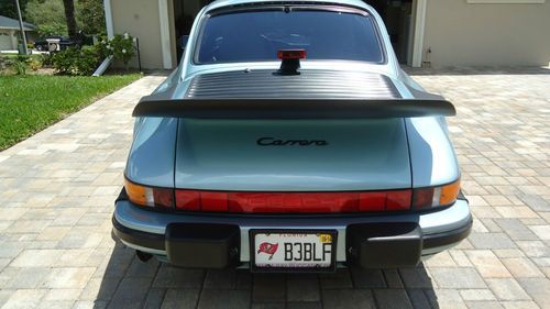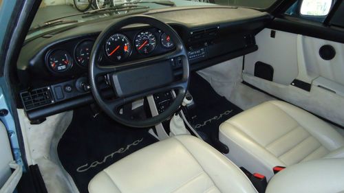 1 Owner original owner ordered through factory/delivery in December 1986. Front and Rear factory spoilers 16" fuch wheels, updated AC original emergency kit still in plastic. Ext color lagoon green, interior linen leather. Sits in garage under cover G50 transmission. Suspension lowered by dealer. This is a very low mileage air cooled Porsche Collectible, in a unique color no longer available. Not a better 911 for sale anywhere.