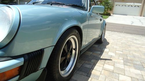 1 OWNER [ORIGINAL OWNER]; ORDERED THROUGH FACTORY/DELIVERY IN DECEMBER1986; FRONT/REAR FACTORY SPOILERS; 16' FUCH WHEELS; UPDATED A/C; ORIGINAL RADIO; ORIGINAL EMERGENCY KIT STILL IN PLASTIC; EXT COLOR - LAGOON GREEN; INTERIOR - COLOR - LINEN LEATHER; SITS IN GARAGE UNDER COVER; G50 TRANSMISION; BLACK HEADLINER AND CARPET; SUSPENSION LOWERED BY DEALER; THIS IS A VERY LOW MILEAGE AIRCOOLED COLLECTABLE IN A UNIQUE AND NO LONGER AVAILABLE COLOR.