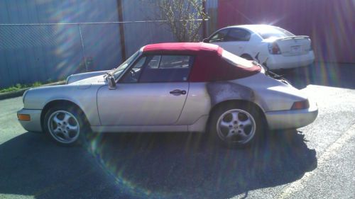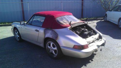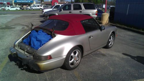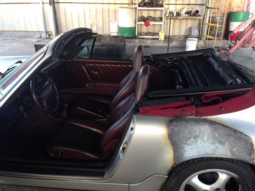 1990 PORSCHE 911, BOUGHT THIS CAR FROM A FRIEND, HE USED IT ON THE WEEKENDS ONLY, VERY LOW MILES FOR THE YEAR. AS YOU CAN SEE IN THE PICTURES THE CAR HAD AN ELECTRICAL FIRE FROM THE ALTERNATOR. ALL THE PLASTICS, AIR INTAKE, CABLES, WERE BURNT(SEE PICTURES). HE DIDNT WANT TO REPAIR IT SO HE SOLD IT TO ME, I HAVE HAD THE PORSCHE SINCE SUMMER OF 2012 AND HAVENT HAD THE MONEY OR TIME TO REPAIR IT. I HAD THE CAR TOWED TO A FRIENDS SHOP, THE DRIVE BELTS TURNED WHEN TAKING IT OFF THE TOW TRUCK. GOOD SIGN.... I HOOKED THE BATTERY AND IT ALL LIGHT UP. THE ELECTRIC TOP WORKS GOOD, ALL WINDOWS WORK, RADIO WORKS, ALL THE LIGHTS ON THE DASH TURN ON. THE INTERIOR IS IMPECCABLE, NO TEARS, NO STAINS, CARPET IN GOOD SHAPE. HAS BOOKS, SPARE, TOOLS, OVER ALL IS IN EXCELLENT SHAPE. I HAD A MECHANIC SPECIALIZES IN GERMAN CARS CHECK THE MOTOR AND HE SAYS BY REPLACING HARNESS AND ALL PLASTIC COMPONENTS THE MOTOR SHOULD BE READY TO START. AS YOU CAN SEE VERY MINOR BODY WORK IS REQUIRED SUCH AS REAR BUMPER, THE REST IS SANDING, AND PAINT. IT HAS A CLEAR TITLE. I HAVE THE CAR LISTED LOCALLY, I HAVE RIGHT TO REMOVE LISTING IF I SELL IT, BEFORE ITS DUE. LOOK AT PICTURES IF YOU HAVE ANY QUESTIONS PLEASE ASK.....EVEN BETTER CALL ME OR TEXT ME AT (281) 669-7340 CARLOS........THANKS FOR YOUR TIME. |