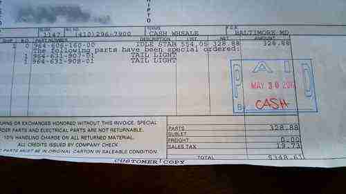 Added receipt for idle stabilizer and light assembly, just not the labor cost.