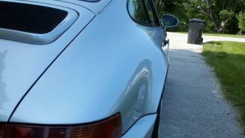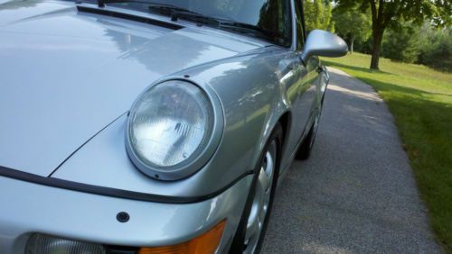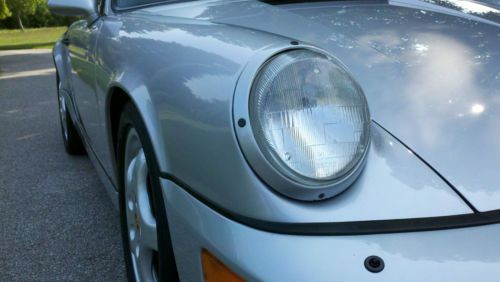 1990 Porsche 911 Carrera 4 (964) 3.6 Liter, 5 speed manual, VIN WPOAB2969LS451938, build date April 10, 1990, Privately owned 20 years, Sunroof Coupe, 85,854 miles, Silver Metallic with rich Burgandy Leather Sport Seats, Black Carpet, Black Dash, with the balance of the interior in Burgandy and Black leather, Andial Stainless Steel Exhaust, Lowered 28 mm with Porsche & Eibach Performance Suspension, Porsche 1990 911 Cup / RS / Turbo: Wheels, Tires, and Turbo Mirrors with covers. Options of: Headlight Washers, Power Leather Driver's and Passenger's seats, other leather interior options. Standard: Central locking, Porsche alarm, complete original: tool kit & compressor kit, spare tire and fan belt. Includes Covercraft car cover, all Books and Service Records since new, extras. Exceptional car, tastefully and carefully modified, a bit of provenance, with the right options. All work done by well respected Porsche dealers and experts. No Accidents or Paint Work. Serious offers will be carefully considered. I have included significant detail which follows. If you are interested in the car we can provide additional information and photographs. The car was washed and vacuumed just before the pictures were taken and the water spots are what is on the blacktop in the photographs. The car's interior, exterior, and, engine bay, could be thoroughly cleaned and or waxed, by the new owner, as I have not done this is some time. Therefore the car was not detailed before the photographs were taken but you see the car in its everyday state. I purchased this car in 1995 at 10,700 miles. At approximately 4800 miles the previous collector owner knowledgeably and tastefully installed the following options. All: products, parts, adjustments, and, specifications, were in consultation with Porsche, Andial, Eibach, Fred Baker Porsche, and, or, Stoddard Porsche, utilizing Porsche and factory approved and acknowledged components and settings, and all components were installed by a leading and knowledgeable Porsche dealer. At the 4800 mile mark, an Andial free flow stainless steel exhaust was installed by Fred Baker Porsche, the exhaust is "slightly" more raucous than stock, however, the power and mileage increase are obvious with less back pressure. The dealer recorded in the service record last month that the car has a normal exhaust note which is important to retain with a performance exhaust. Also at that time a performance suspension was installed. The car was lowered 28 mm with Andial, and, Porsche, components, including Eibach progressive rate springs, and shocks, which were placed front and rear, again by Baker. European ride height and front sloping attitude of approximately 25 mm, and were set according to the factory performance specifications. Baker also installed the Porsche factory 1992 911 wheels available on the: Cup, Turbo, RS, and, Carrera 4 Special, and are 17 inch wheels and tires. Back wheels are 17 x 8 with 255/40 ZR 17, Front wheels are 17 x 7 with 205/50 ZR 17. There were no spacers used in installing these wheels, it was done with factory components as the factory installs the 17 inch wheels on this model as if factory option. At this time Baker also installed the factory 1990 911 Turbo exterior mirrors with optional covers. Later a Weltmeister Cambermeister strut tower brace, and, Sony stereo with: Bluetooth, MPS, CD, Phone, capability, were installed. The original Blaupunkt stereo is included with the car. Following this the car was: corner, side to side, and, front to rear weight balanced and aligned by a Porsche certified mechanic at a Porsche race shop, with 200 pounds on the driver's floor, investing 7 hours to get the specifications correct. A Covercraft cover, and Porsche floor mats and mirror covers, and miscellaneous accessories go with the car. The previous owner also had a performance chip installed. I do not have installed at this time. We tried the chip and the idle is wonderfully lumpy with the intake very audible at higher rpm and full throttle with all of the fuel, air, and intake runners opening up and with the power being made. Very impressive power increase with the chip and the exhaust. However, we had the dealer remove the chip and replace with the stock unit, as their diagnostics would not fully function with the performance chip in the car. You can simply plug it in and go though and have the dealer plug in the stock chip if diagnostics are needed, and have them put the performance chip back in the car. We have all Porsche dealer service records from new to present, including the Porsche Warranty and Maintenance book which has been incrementally updated and validated by the Porsche dealers. New Nitto tires were installed on 8.7.2014 at 85,600 miles. On 7.1.2014 Porsche dealer changed oil and filter with Mobil 1 (used since new) and changed the front differential & trans axle fluids to synthetic, changed front and rear wipers, recharged AC, replaced fuel pump relay, with other miscellaneous service. There was numerous other preventive and required service performed between this and the preceding 60K service, and we also recently put on new brakes and rotors. At the 60,000 mile service we changed the differential and trans axle fluids also, and had the valves adjusted, etc. At some point the Porsche dealer replaced the clutch and pressure plate. We also have the correspondence with the principals of Andial, and correspondence with Baker and Stoddard Porsche relating to this specific car and special factory specifications for alignment and tuning with this suspension. Porsche, Andial, and, Stoddard, gave input as to the suspension settings when the car was weight balanced and aligned to ensure it was done correctly. When car was last corner balanced, we recorded those settings in the records, and the alignment specifications are included. To align, just furnish specifications to your dealer, and with any corner balanced car, tell them to not change the spring perches, whi
