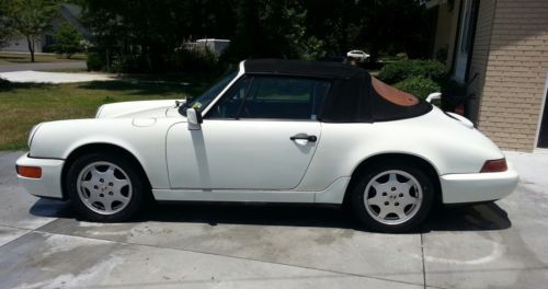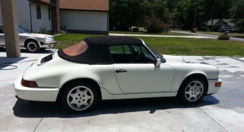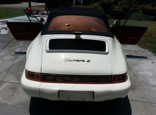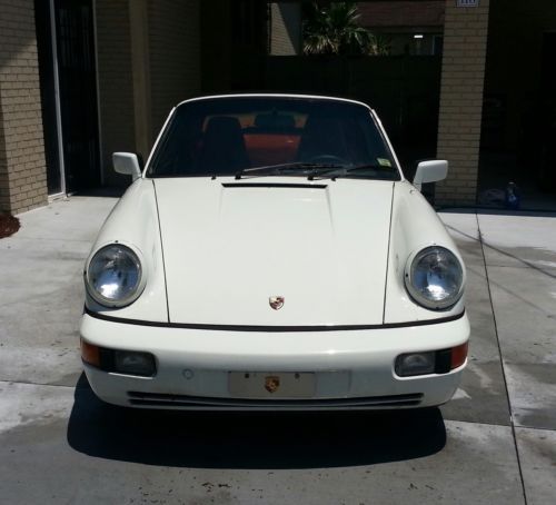 You're looking at my gorgeous 1991 Porsche 911 (964) Carrera 2 cabriolet, finished in bright white with near perfect lipstick red leather (white piping on seats) with only 51k original miles. The car is super clean, but has been sitting for a few years covered and I don't have time to fool with it now as we just bought a new river house and I'm selling several of my 911's to put towards the purchase/remodel. I am selling this car as a project. It is 100% complete and original. The car is very pretty (has clean carfax) and the interior is super nice, as is the body. All gaps are nice. The soft top is good, but the rear plastic window is shot...cracking and discolored. Dash is perfect with no cracks. The factory rims are gorgeous and tires show well but are older and most likely have flat spots from sitting. Since the car has been sitting for years, I didn't want to attempt to crank it over, but the motor turns. I would assume you would want to go through it though for safety/peace of mind reasons. I have no idea how the electrical is now as the battery is long dead, but everything is tidy and no rodents have gotten in. The body is dent free and the front trunk is clean as a pin. I have all manuals, some records, and all keys for it. Not much to say other than it is a nice project for someone and will only go up in value over the years. These air cooled Porsche's are going through the roof. This particular 911 is an automatic. I am selling several of my 911's (see my other listings) to raise money for the river house. I would be happy to do a package deal or help international buyers. The Port of Charleston is only about 3 hours from my home. I am a private collector, not a dealer, so all sales are final. No returns, and no warranties expressed or implied. Please make sure your funds are readily available as I require a $500 paypal deposit immediately following the end of the the auction (so I know you're serious) and full payment within 5 days of auction end. If you cannot do this, please do not bid. Thanks for looking and message me with any questions/offers. Happy bidding and good luck. This is a no reserve auction, so the last bid wins!