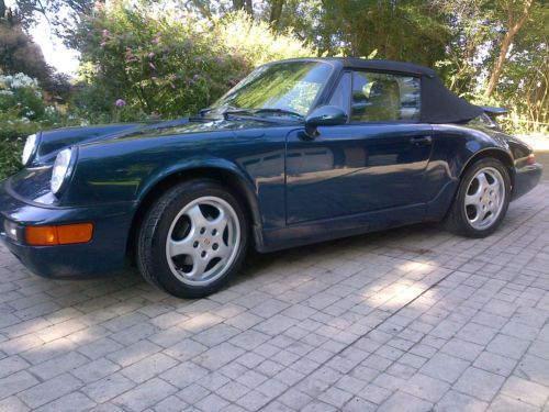 Offered for sale is this modern classic – a stunning 1992 Porsche 911 Carrera Cabriolet finished in desirable dark metallic blue over a tan leather interior with only 93,000 original miles. Always enthusiast owned and properly garaged, the car presents beautifully with strong mechanicals and the original interior. Reason for selling - It is our 4th car. Well Maintained: Service History Available; Two owners - - Original California Car purchased in 2001; Current Inspection; New Brakes; Garaged; Original Tool Kit and Owners Manual; Unused Original Spare Tire; Original Porsche Floor Mats - spotless; Manually Operated Top with New Fabric; Original Boot Cover; More.