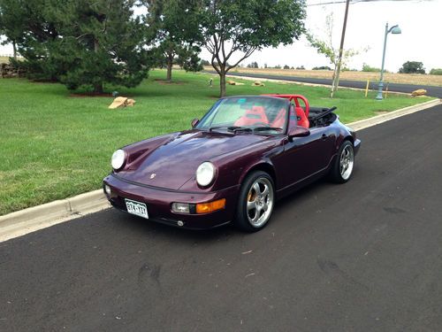 Low Reserve on this is beautiful Viola Purple Carrera 4 Convertible. I have owned and taken care of this vehicle for about 14 years! It has nice after market wheels, 3A Racing seats, and an SCCA approved ( bolt in ) DAS sport roll bar ( all shown in pictures ). It has after market strut tower braces for better handling, Bilstein coil struts, Carrera Turbo tie rod ends, a performance chip and the normal fuel map chip will be provided. A K&N style high flow airbox and may a few other odds and end I forgot about over the years. It is very fun to drive!