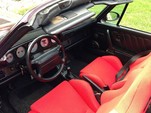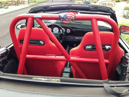 I have never raced the car ( the roll bar is due to the mountain road I used to drive on for safety ( rt 9 Saratoga, many hairpins, drop-offs, fun driving! ) , since its a convertible ). The roof is good and lowers and raises fine and is water tight( I did glue some material inside to an area I thought would wear while rasing and lowering it, but it turns out its fine after 10 years since I last replace the roof ). It is always garaged, never driven in the snow, and very rarely in the rain. It just passed its most recent required smog check less than a week ago ( of this posting ). I can provide original black leather power seats and Carrera cup wheels at an additional price. It is a great running, strong running Porsche and looks stunning for its age! I always get lots of compliments when I drive it! Its time to sell it as it pretty much sits in my garage all year until I need to re-register and smog it! Roughly 400 of the C4 Cabs were sold in 1993 in the U.S. probably only a few in this color!