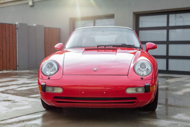 The car is finished in Guards Red (L80K) and features a power-retractable black soft top as well as fog lights, a speed-activated rear spoiler, a “basket handle” raised spoiler with an integrated third brake light, a heckblende, and twin polished exhaust outlets.