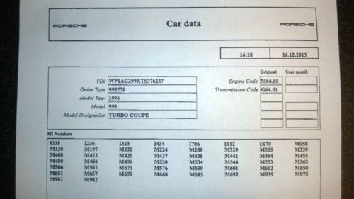 THIS FINE MACHINE RUNS / PERFORMS/ DRIVES LIKE NEW IN EVERY WAY, SHAPE AND FORM AND NEEDS NOTHING MECHANICALLY DONE (Other than perhaps rear tires soon). THE COSMETICS ARE IN GORGEOUS OVERALL CONDITION BOTH INTERIOR AND EXTERIOR. SOME OF THE OPTIONS INCLUDE: POWER SUNROOF, SUPPLE LEATHER, PORSCHE CELL PHONE WITH CONSOLE, 6 DISC CD CHANGER, METAL DOOR SILL MODEL INSIGNIA, HEAD RESTRAINT WITH PORSCHE CREST, PORSCHE FLOOR MATS, SELF DIMMING MIRRORS AND RAIN SENSOR, ETC .... (SEE OPTION CODES LISTED ON PICTURE).