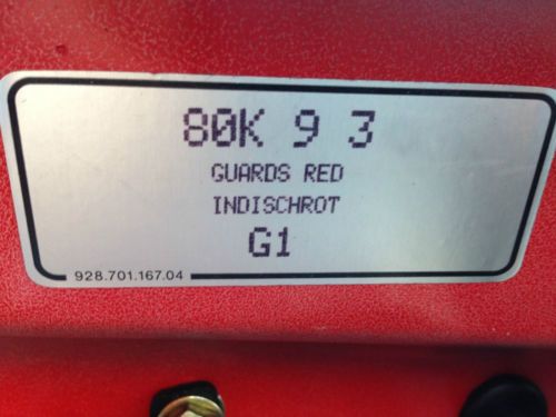 ALL BOOKS / MANUALS, BEGAN IT'S LIFE AND LIVED MANY YEARS IN CALIFORNIA, RECENT SERVICE RECORDS AND SERVICE BOOK DEALER STAMPED, JUST FULLY SERVICED 700 MILES AGO PERFORMING EVERYTHING MECHANICALLY NEEDED, NO ACCIDENT HISTORY, ALL ORIGINAL PAINT EXCEPT A SLIGHT DENT REQUIRING PAINT ON THE LR QUARTER THAT WAS PERFECTLY DONE, PORSCHE CERTIFICATE OF AUTHENTICITY, STUNNING PORSCHE GUARDS RED WITH BLACK SUPPLE LEATHER INTERIOR THAT WAS NEVER SMOKED IN AND HAS THE ORIGINAL PORSHCE "SMELL".