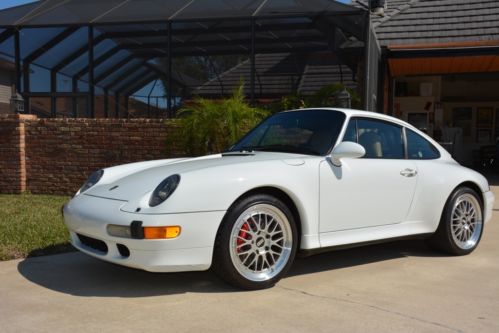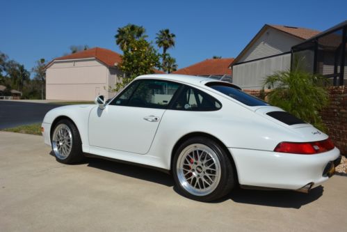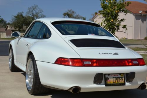 1996 Porsche Carrera 4S Model No. 993140 Color: Grand Prix White Interior: Cashmere/Black (LC) Vehicle ID: WPOAA2998TS321114 Engine: 3.6Liter, 6 Cylinder 282 BHP Drive: AWD Accessories: Power sunroof Headlight Washer Frt. seat, power height adjustment AM/FM Cassette with 6 CD changer Power side mirrors DAS Sport-System Roll Bar Porsche Custom Car Cover Colgan Front and Mirrors Bra BBS Wheels B & B Tri-Flow Performance Exhaust System Brey-Krause Strut Tower Brace MSDS Ram Air Cleaner System with K&N Filter Bird Automotive Leather Cellular Armrest with Beverage Holder Custom Fiber Cocomats Lo/Jack Recovery System