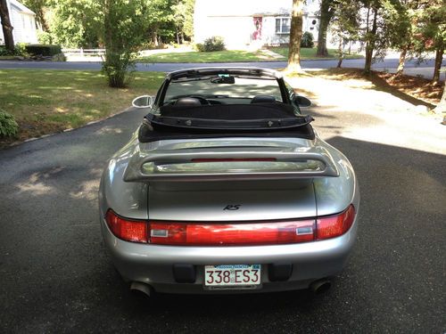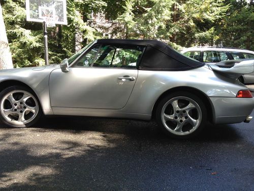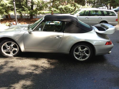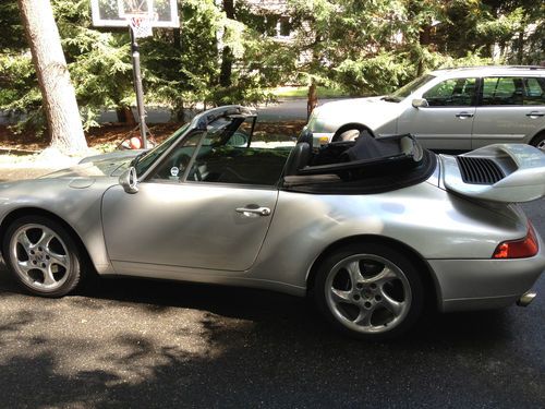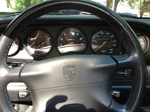The 911 is silver with full black leather interior and offers the vastly superior manual 6 speed transmission with original limited slip differential. It simply drives amazingly, I don't know how else to put it. The acceleration is strong, handling is balanced and predictable, and the motor sounds intoxicating. With the power top down and cruising down the road this car is a ton of fun! It looks amazing with aggressive front and rear spoilers, but at the same time it's very civilized to drive around down and not over the top. It offers the following great features: Litronic lights, limited slip differential, full leather interior with power leather seats, 18 inch Porsche Turbo twist wheels, TechArt front and back spoilers, Alpine CD system and changer, Motor Sound Package with aftermarket stainless steel performance exhaust (GHL), new Toyo Proxy tires, new Bosch battery, up to date service, and CarFax clear title guarantee!!