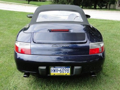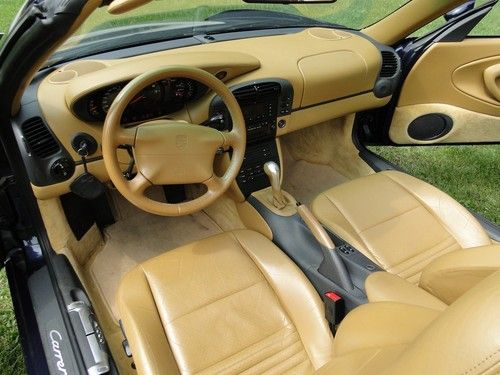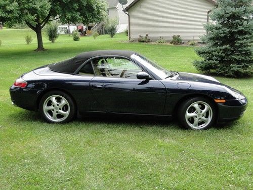 For Sale 1999 Porsche Carrera Cabriolet 64537 Miles, Metallic Ocean Blue, Black convertible top (also included Blue Hard Top), 6 speed manual transmission, Traction Control w/ ABS, Full Power seats and top, Upgraded Savanna Biege Leather ($3215 option), Upgraded AM/FM/CD Stereo System with six disc CD player under hood. Wind screen and car cover are also included. Car is in good condition and runs perfectly. Top and tires are also in very good condition.