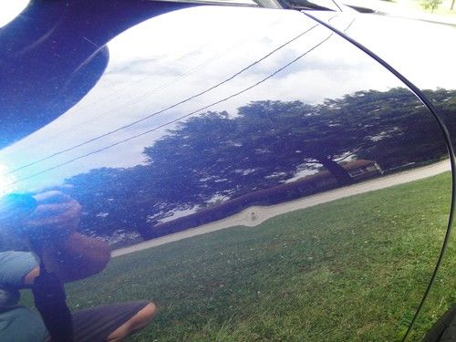 There is one small ding on the passsenger side door, one on the driver side rear quarter panel, and some light scratches on the front bumper that will buff out. Both wheels on the passenge side of the car are in great shape, there are two small scrapes on both driver side wheels. On the interior, finish is worn off the truck/hood release lever, and something is on the passenger rear speaker cover. All of these issues can be seen in the attached photos.