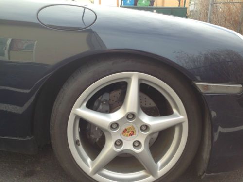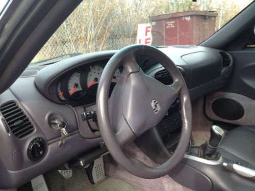 This is a great opportunity to get into a nice well sorted porsche 996.With 993 prices so high these days, you are hard pressed to get the bang for buck a 996 delivers.I am a 20 year porsche tech and shop owner and this is my personal car.I purchased it from another porsche tech shop owner.He bought it from one of his clients after a minor incident with a guard rail.The owner drove under it damaging the right front fender,hood and bumper.I normally dont buy salvage title vehicles,but after seeing this car I had no worries about the damage.The previous shop owner bought it from the insurance company without hesitation because the owner had just put $17000 dollars into the engine,suspension,upgrades, etc.This includes a top end rebuild,new heads, hoses,starter,wiring harness, alternator,coolant tank,oil separator,heater hoses, rear main seal,IMS retrofit bearing upgrade, light flywheel,ecu upgrade,factory muffler bypass(sounds amazing)Short shift kit,Full bilstein pss9 coilover suspension,997 18" sport wheels, michelin pilot sports(65%) brakes are 85%,rear wing, light window tint,grey leather interior,power heated seats,white gauges,factory litronic headlights.The car now has 150k miles and all the work was done @ 136k so this porsche has a lot of life left.It drives super straight,rattle free,handles the curves like a porsche should,synthetic fluids used in engine, gearbox, etc.I have reciepts for all the work done.The previous owner was able to source a used hood,fender, and bumper from another car the same color!! so no paint or body work was needed other than a little inner fender well straightening(see picture) The paint and body are in great shape,not one dent or ding(typical front bumper rock chips)This is an honest well sorted 996 and only selling to purchase another collector car.I guarrantee the new owner will be very happy with this car,You can fly out and drive home!! If you have any questions feel free to call me (650) 796 1213, check my feedback I take it very seriously,please be a serious buyer with the funds to puchase this great example of porsches finest.The only issues right now is the turn signal doesnt cancel and the right window regulator is noisy,other than those two things this porsche is ready to drive and would be a great track car as well.Title in hand and currently registered till dec 2014.Located in the bay area california.