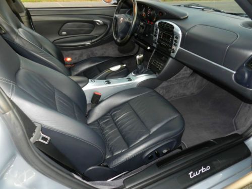 POLARPORSCHE.COM ANY QUESTIONS CALL 856-638-5695 2001 911 TURBO / 6 SPEED POLAR SILVER / METROPOL BLUE __________ 14,400 MILES _________ CARBON STEERING WHEEL / SHIFTER / E-BRAKE / GAUGE SURROUND POLAR SILVER CENTER CONSOLE & DASH TRIM BLUE LEATHER WITH SILVER STITCHING HIFI SOUND FULL POWER - HEATED SEATS MATCH PAINTED BUMPERETTES 19IN. VICTOR WHEELS H&R SPRINGS JUST SERVICED WITH NEW AIR, FUEL, & CABIN FILTERS, TRANS & FRT DIFF OILS, OIL CHG, BRAKE FLUID TIRES AND BRAKES ARE GOOD, NEEDS NOTHING !!!! ITS AN AMZING RIDE, YOU DONT FIND THEM IN THIS CONDITION EVERYDAY JUST GET IN AND ENJOY !!!!!!!! BUYER RESPONSIBLE FOR PICKUP / NO SHIPPING |