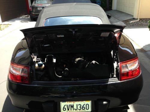 2001 Porsche 991/996 Convertible Cabriolet Black exterior/ Black leather interior / Black convertible rooftop This car has been loved and cared for its entire life, and spent most of its time in California except for 2009-2011 when it accompanied me to Massachusetts. I am the 3rd owner, and the car was regularly serviced at dealers and independent Porsche specialist shops. The car performed very well until last month when it started overheating @ 90,266 miles. Mechanic diagnosed either a broken water pump or broken oil heat exchanger, and suspected that the engine is likely damaged, and should be replaced or rebuilt. Cooling system should also be flushed due to oil/water mixture. The car starts and drives for short distances, but will need to be repaired before it can be used again. Car is therefore sold "as-is". I considered repairing the car but decided to buy the newer version instead. Video of car running and driving: http://www.youtube.com/watch? CARFAX report: https://dl.dropboxusercontent.com/u/7390037/2011%20Porsche%20911%20Convertible%20-%20Carfax.pdf Car is currently being stored in Palo Alto, CA. I will assist the buyer to ship the car anywhere in the US, but the buyer is responsible for arranging and paying all shipping costs. Recent maintenance @ 42,352 miles New convertible top with upgraded glass window @ 62,031 miles Upgraded to 997 turbo style rims Upgraded LED taillights: Porsche original included with car Upgraded clear LED sidelights: Porsche original included with car @ 73,174 miles New ABS brake pump & sensors Installed AUX input incl. static sound reducer @ 77,612 miles New rear tires & alignment @ 80,419 miles New clutch kit & flywheel @ 83,446 miles New spark plugs (6) & ignition coil (6) New fuel pump & battery New key ignition switch @ 84,562 miles New front brakes & disc New rear brakes & disc @ 88,299 miles Professionally buffed front headlights & performed full Amberectomy (google for details) New windshield wiper & headlight spay pump New front hood and engine trunk struts Latest oil chage (Mobil1 0W40) @ 88,561 miles Passed CA SMOG (prior to engine damage, currently no warning lights on: see picture) Included with the car (retail value) -- Porsche 996 roof carrier to carry bikes, skis, cargo box, etc. ($700) -- 2 universal bike carriers: no need to remove front tires, bikes not included ($300) -- Custom fit CoverKing car cover ($150) -- Wind deflector ($300) -- Original Porsche OEM taillights: if you don't like the LED taillights ($300) -- Original Porsche OEM sidelight: both amber and clear if you don't like the LED ones ($150) -- Original cover flaps: if want to remove the roof carrier attachments -- Ultra-magnetic oil drain plug: monitor engine health ($50) -- 2 oil Hengst filters & drain plug washer ($50) -- Additional OEM Porsche 996 hood crest ($50) -- Additional key ignition switch -- All maintenance documentation available -- Original Porsche tools & spare tire (including wheel lock) -- Original ownership & service manuals -- CA Certificate of Title (available on hand; will be mailed separately) |