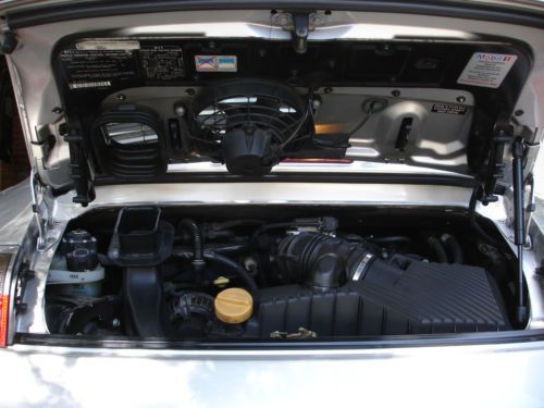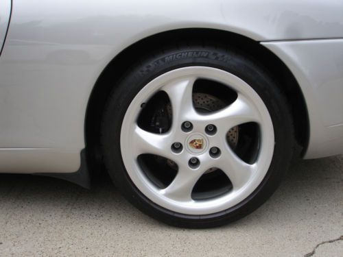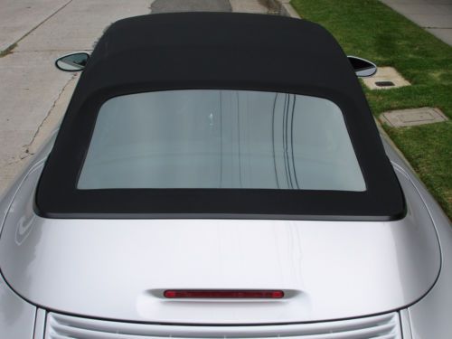 This car was purchased at Rusnak in Pasadena, CA and has been based and garaged in Santa Barbara, CA throughout its history. About three years ago the left (driver's side) rear fender, wheel and corner of the rear bumper were scraped by a passing auto (not hit as such ... no real impact). All brand new factory parts were installed (fender, wheel, bumper) and factory identical attachment was performed by Coachcraft of Fillmore, CA. Paint color and orange peel match perfection. Undetectable. Only cosmetic mentionable is a scratch to the convertible top. As tops go, it is 98 percent. This includes a beautifully maintained CLEAR rear window. I have all receipts, the original key sets and window sticker. 6 Cyl 3.4 Liter 300 HP Water Cooled Engine 6-Speed Manual Transmission Arctic Silver Metallic Black Full Leather Interior w/ Black Deviant Stitching Porsche 6-CD Player Heated Front Seats 18" Lt Alloy Wheels - Turbo Look Litronic Headlights Wheel Caps w/ Colored Crest Rear Carrera Script Delete A deposit of $1000 is required from the buyer upon purchase with the balance to be paid within 7 days. |