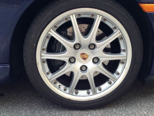 I purchased the car with 11,500 miles on it. Since owning it, I put on new Bridgestone Potenza Pole Position tires and had an annual service performed at the local Porsche dealer. I've driven the car 3,000 miles in 18 months which is not enough for such a great car and with two children the 911 will never be my daily driver. Always stored inside. Vehicle is available for inspection. All books and records included. Car cover included. Do not hesitate to contact me if you have any questions. update: as I looked more closely at the wheel pictures, only one wheel has a small flaw which was on wheel when I bought car; the other imperfections in the pictures are road grime |
