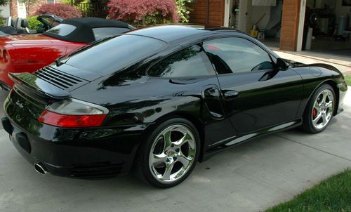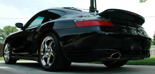 This 911 Turbo is a beautiful car.  Pristine black on black with black suede roof.  All power with heated seats.  Low mileage, garage kept , non smoker car.  Purchased new car so need garage space.  I love this car but since it is driven the least of all of my cars it must go. This car was originally a west coast car and since bringing it east it has never been in the rain.  It spends the majority of it's life under a $300 soft cover in a heated and air conditioned garage.  Exterior and interior are exceptional.  No dents or dings and paint shines like the day it rolled off the showroom floor.  The only flaw is some minor rash in the plastic lower valance on the nose, shown in the pics.  The chrome wheels are perfect.  The rear tires are 100% as I just replaced them last year.  They may have 200 miles on them.