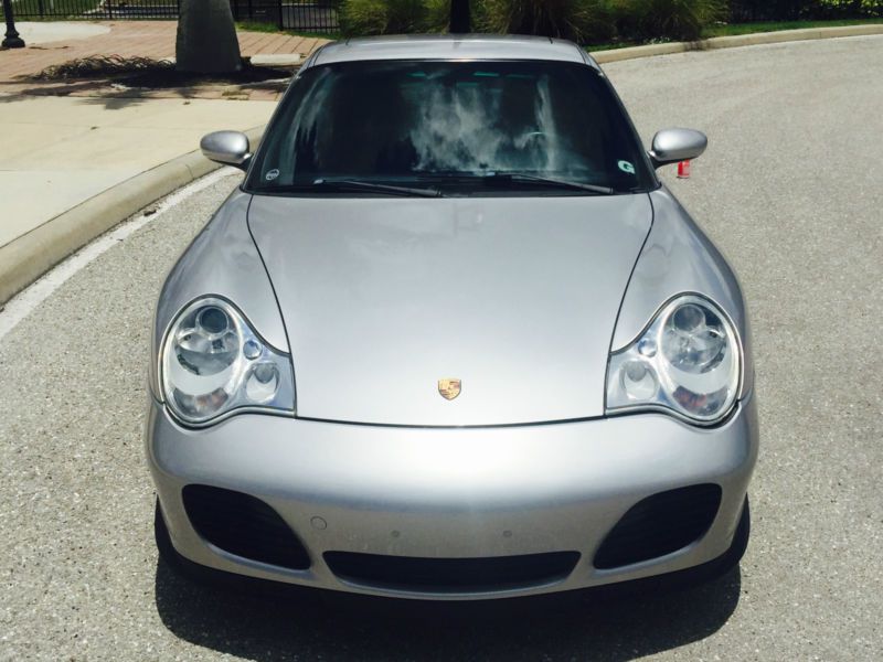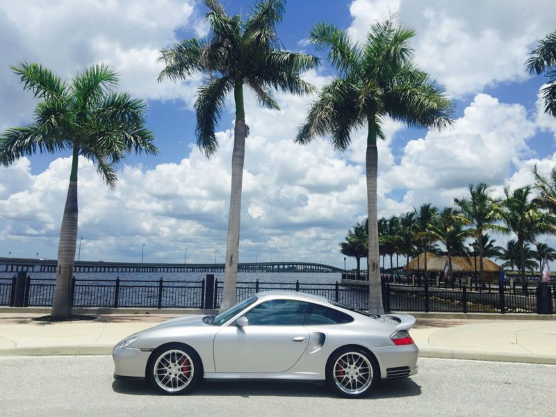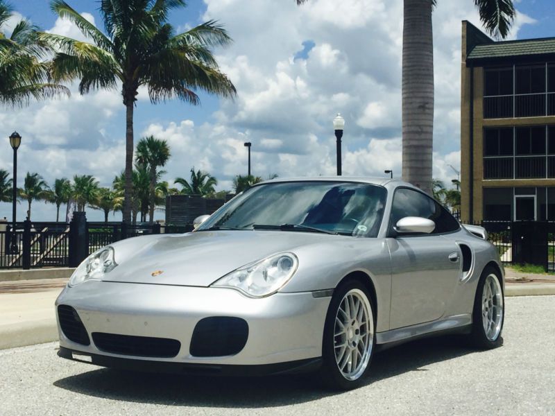 2003 Porsche 911 996 turbo with a manual transmission. This outstanding Porsche is classic silver with black leather interior and the car is equipped with power sunroof, multi CD audio playing through Bose speakers, and auto climate control. It also has everything else you would expect in a luxury supercar. It has Porsche BBS style deep dish rims with nearly new tires also. This car is completely stock with no modifications made to jeopardize the great reliability of the 911 996 turbo.
