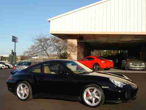Low Miles 2003 Porsche Turbo Coupe Black over savanna Beige Full Leather Loaded with ;Water Cooled 6 Cyl Engine 3.6L Twin Turbo , Heated Front Seats , Wheel Caps with Colored Crest , Supple Leather Front and Rear , 6 Speed Manual Transmission , Hydraulic Clutch , Front and Rear Stabilizer Bars , Dual Front Airbags and Side Airbags , 3 Way Catalytic Converter , Porsche Stability Management System /PSM/ , Bi-Xenon Headlights with Automatic Adjustable Range , Daul vanity Mirrors Illuminated Immobilizer Anti-Theft System , CD in Dash , Power Memory Driver Seats , Books and Keys , Only 29k Miles .For more information please call Eric @ (865) 690-3886 .