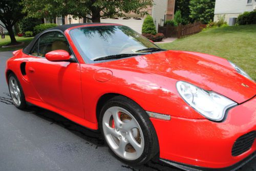 *2004 PORSCHE 911 TURBO CABRIOLET With FACTORY HARD TOP* -Guards Red over Savanna Beige leather. -Dark Wood Package. -Soft Look Leather. -X50 Performance Package. -Navigation System. -Almuninum Shifter & Brake Handle. -Lumbar Support. -CD Changer. -Floor Matts. -Red Hard Top. -MSRP was $151,405.00!!!