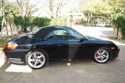 2004 Black on Black Porsche C4S convertible with 29,960 miles. Clean with only a few minor scrapes and blemishes. Full leather package, CD sound system, optional hard top, K&N Air Intake, 4 new tires & power seats. No issues with the car since I have owned it in 2006. Original sticker $93,965. It was certified pre-owned in 2006. All service records are at Roger Beasley. Includes a custom cover as well as wall rack for the hard top. Out of town buyers pay shipping cost. Clean car fax with the exception of replacing the rear bumper panel after I backed into another car at slow speed. This is an amazing car that I hate to sell. The only reason I am selling is that I just got the new Tesla S and don't have room in the garage for both. It also includes a custom Wolf car cover, Porsche battery charger and a custom radar detector.