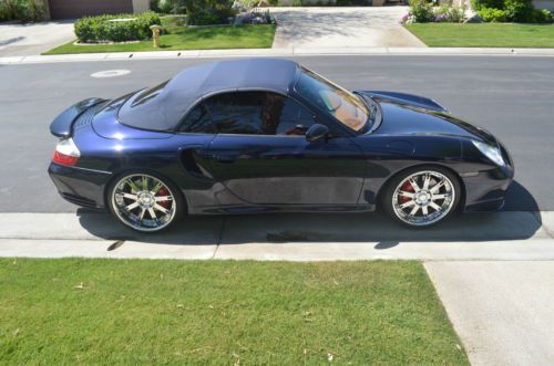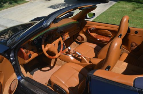 Midnight Blue Metallic Exterior over Natural Brown Leather Interior LIGHT WOOD PACKAGE! AFTERMARKET WHEEELS! ORIGINAL WINDOW STICKER LIST $148,840 FACTORY OPTIONS INCLUDE: Natural Leather Interior (Originally $1,510) Light Wood Interior Package (Originally $5,220) 3- Spoke Leather/Wood Steering Wheel (Originally $1,205) Rear Center Console in Leather (Originally $1,260) Sport Shifter (Originally $765) Aluminum/Chrome X71, X70, X54 (Originally $1,885) Brake/Shifter in Wood/Aluminum (Originally $880) Front Spoiler Lip Painted (Originally $390) Side Skirts Painted (Originally $930) Front Air Intakes Painted (Originally $560) Porsche Crests in Headrests (Originally $220) Lumbar Support - Right Seat (Originally $385) Lumbar Support - Left Seat (Originally $385) Parking Assist System (Originally $530) 6-Disk CD Changer (Originally $715) ADDITIONAL UPGRADES Aftermarket Wheels Tinted Windows VHICLE HIGHLIGHTS: 3.6 Liter Twin-Turbo 6 Cylinder Engine 415 Horsepower 415 ft/lb of Torque 6-Speed Manual Transmissiion All Wheel Drive Hydraulic Clutch Bi-Xenon Headlights Power convertible Soft Top Metropol Blue Top Parking Assist System Power Adjustable Front Seats Drive Seat Memorized Adjustment Automatic Climate Control BOSE Sound System Porsche Communication Management Natural Leather Interior Light Wood Interior VEHICLE HISTORY: Exceptionally Well Equipped Tasteful Upgrades
