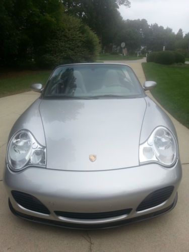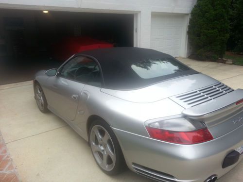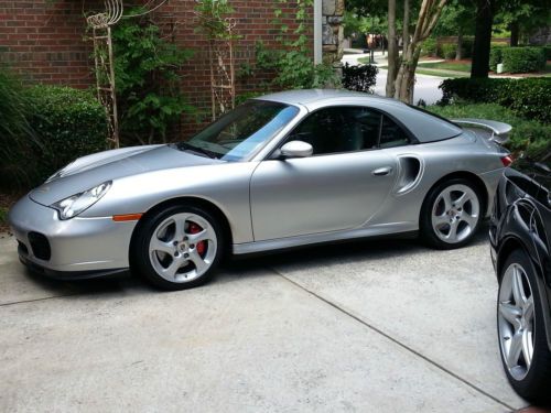 Just before Porsche released the 2005 Turbo S model, they installed a few X50 Power Packages in the late production 2004 turbos. Except for the ceramic brakes, this car has everything the Turbo S has except the high price tag. Equipment options: Headed seats, 18" Turbo twist rims with color center crests, remote 6 Disc CD changer, full leather, Stainless Steel Exhaust pipes, driver lumbar support, wind screen AND matching removal Hard Top Freshly serviced at local Porsche dealer Arctic Silver Metallic over light grey leather interior |